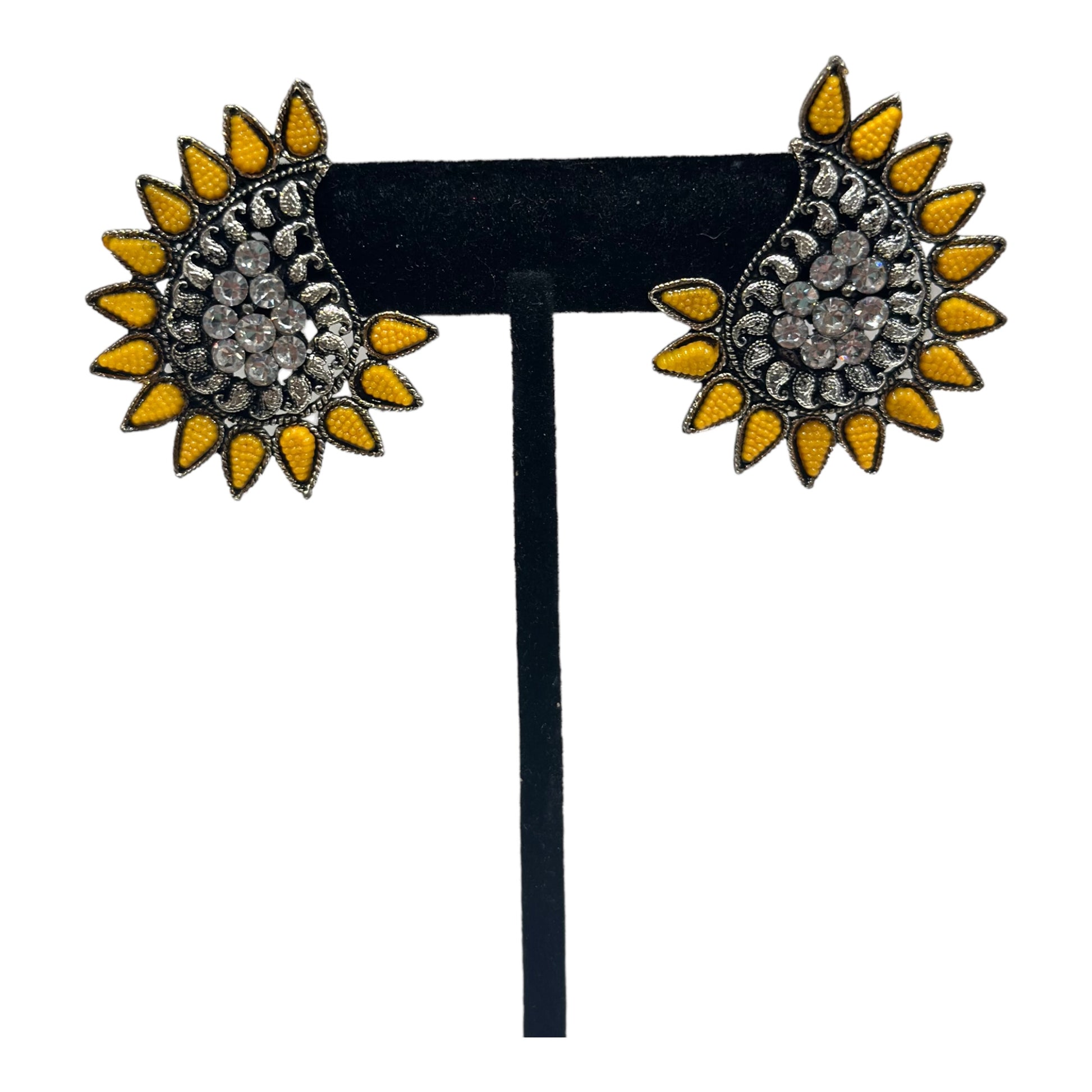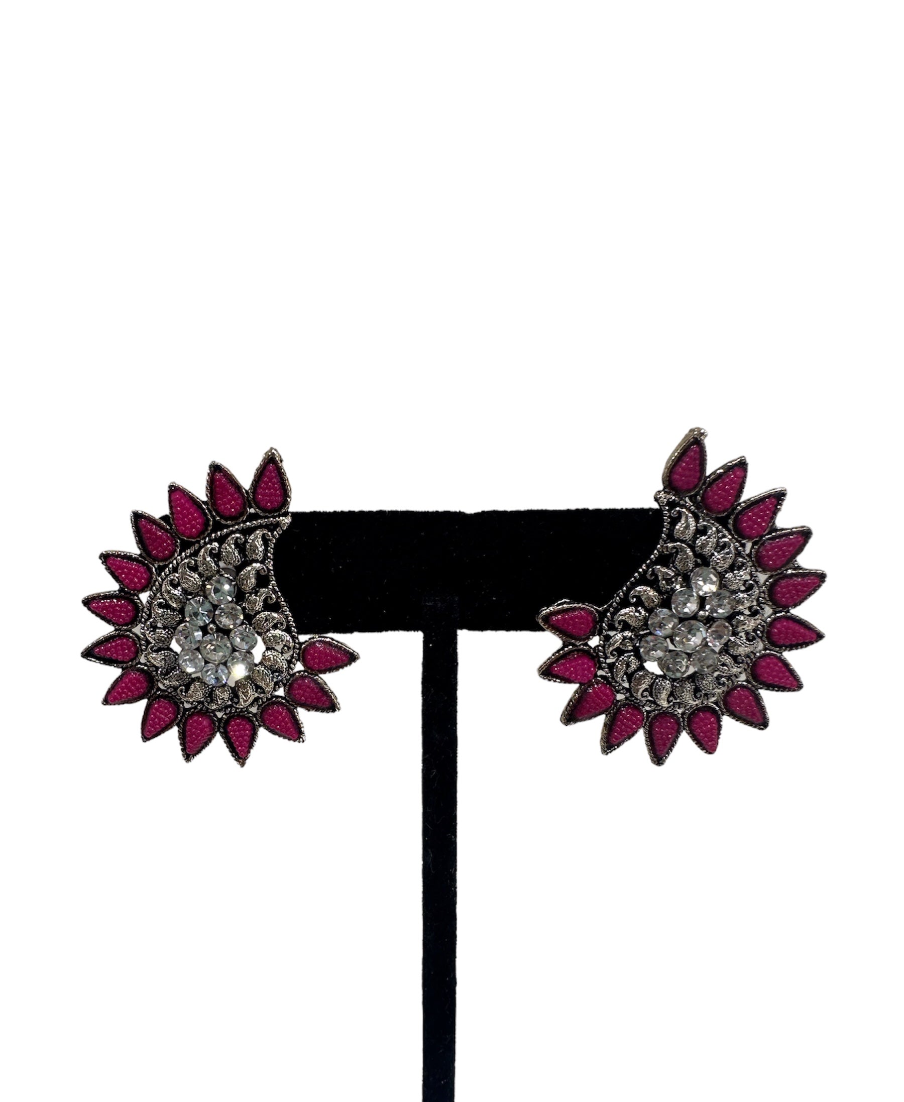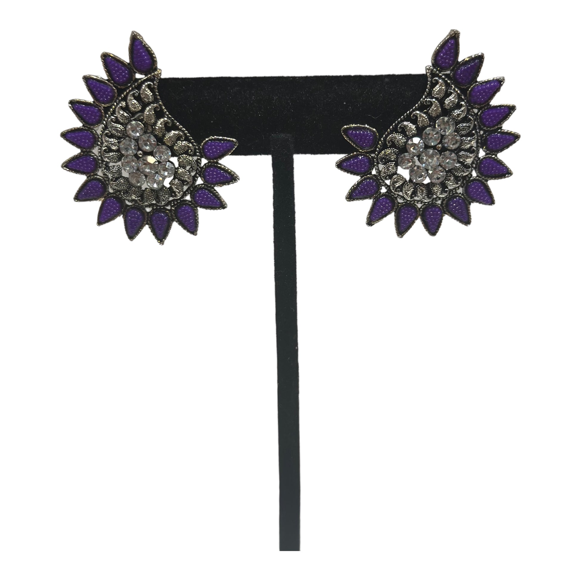 - This earrings is made of corroded silver, beaded embroidery in multiple colours, and an antique texture. It's the ideal striking piece of jewellery for formal occasions. This is a trendy piece of handmade jewellery for women.
