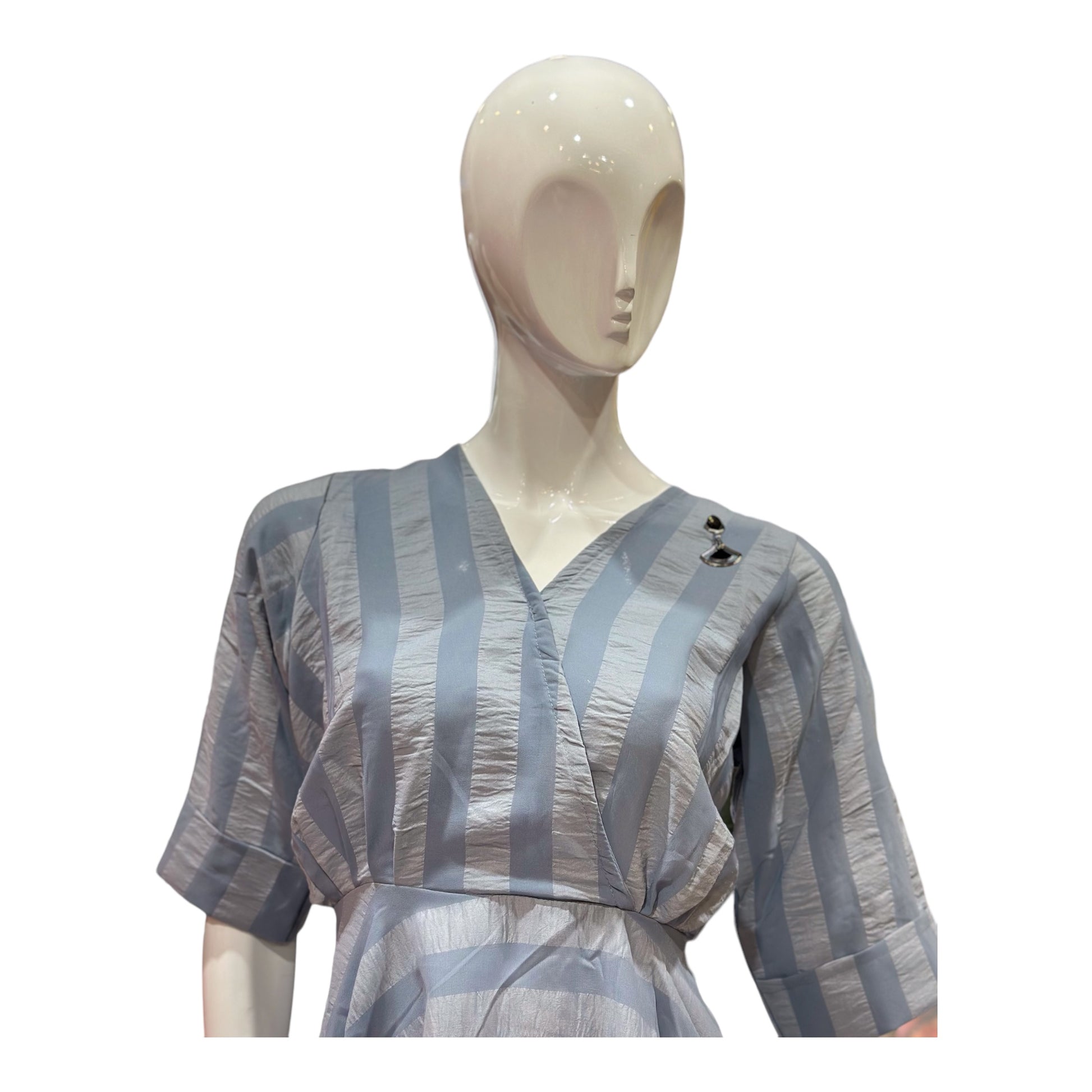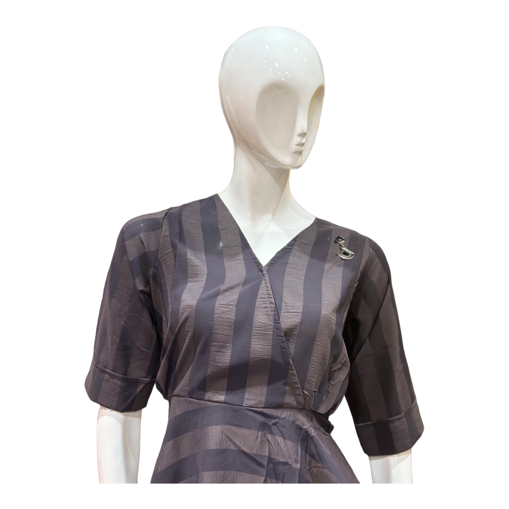 Women 2 pc coord set with pants, frock style coord set in stripe pattern.